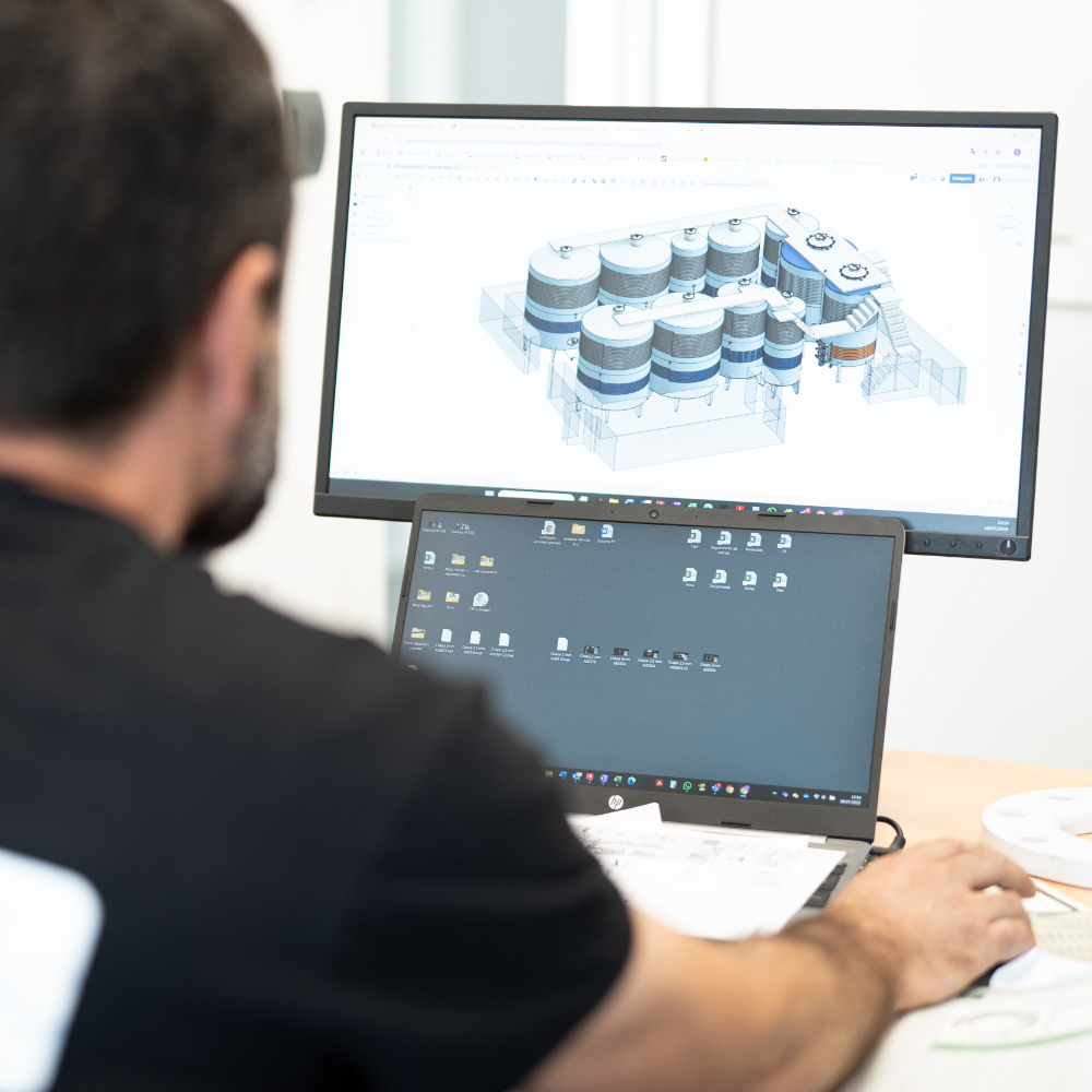 Nuestro equipo de ingeniería utiliza herramientas potentes que nos ayudan a innovar y acelerar cada aspecto del proceso de desarrollo de nuestros productos. Para ellos utilizamos softwares como SolidWorks que nos permite modelar piezas y ensamblajes en 3D , así como simular y gestionar los datos del proceso de diseño.